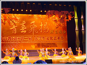 11月18日晚,浙江财经学院文化活动中心剧场掌声阵阵,欢歌如潮,下沙高教区14所高校的大学生,正以自己的青春激情演绎一台名为“青春飞扬”的大型综艺晚会,为期近一个月的下沙高教园区第二届大学生文化艺术节由此正式拉开帷幕。副省长盛昌黎宣布文化艺术节开幕,省政协副主席梁平波向文化艺术节主办方赠送题词。省委教育工委副书记、省教育厅副厅长蒋胜祥,团省委副书记徐旭以及下沙高教园区各高校的有关负责人出席了开幕式晚会。我院党委书记童学敏、副书记潘素芳及有关部门负责人应邀出席了晚会。